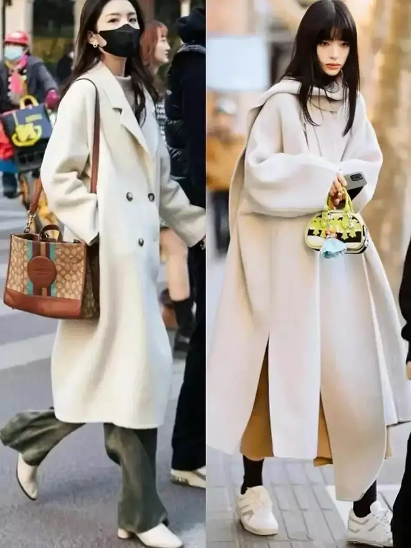 新的一年,新的战袍大衣外套是必备之选。不过,若想让大衣穿出更出彩的造型,普通大众女性最好避免选择小黑裤、紧身裤来搭配。除非你有着像女明星或素人博主那样修长笔直的腿型身材比例,否则这样搭配可能不太理想。