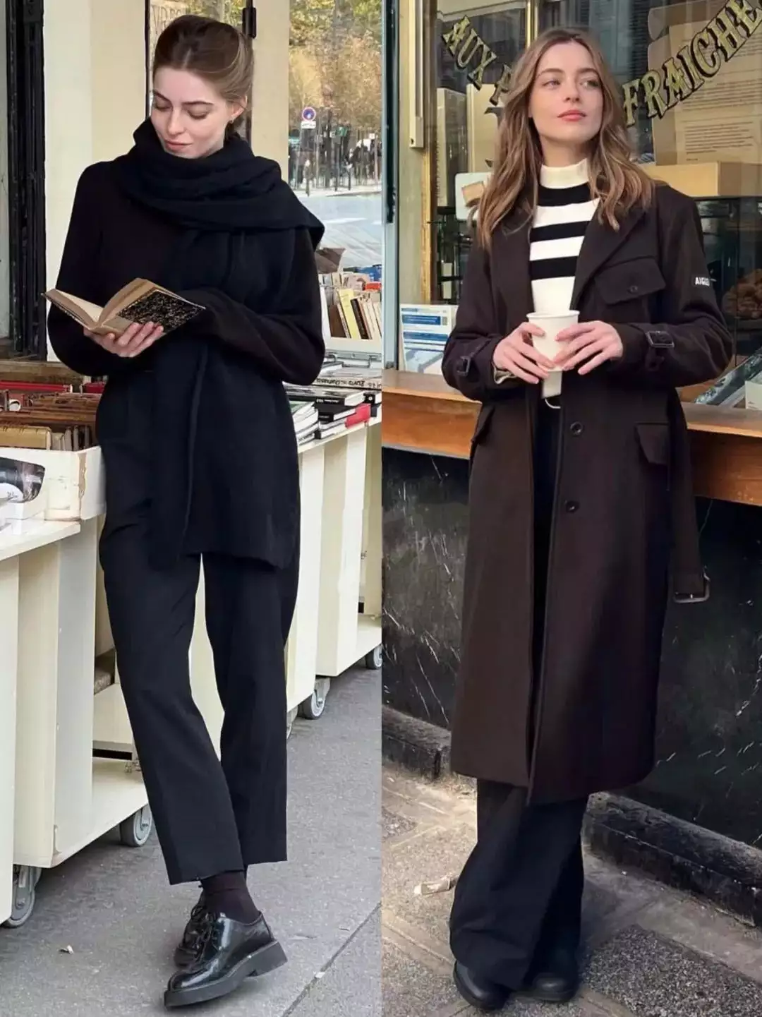 黑白灰等基础色是打造高级感穿搭的经典之选。一件黑色大衣内搭白色衬衫和黑色小高领,再配上灰色直筒裤和黑色短靴,整体造型经典大气,尽显高级品味。