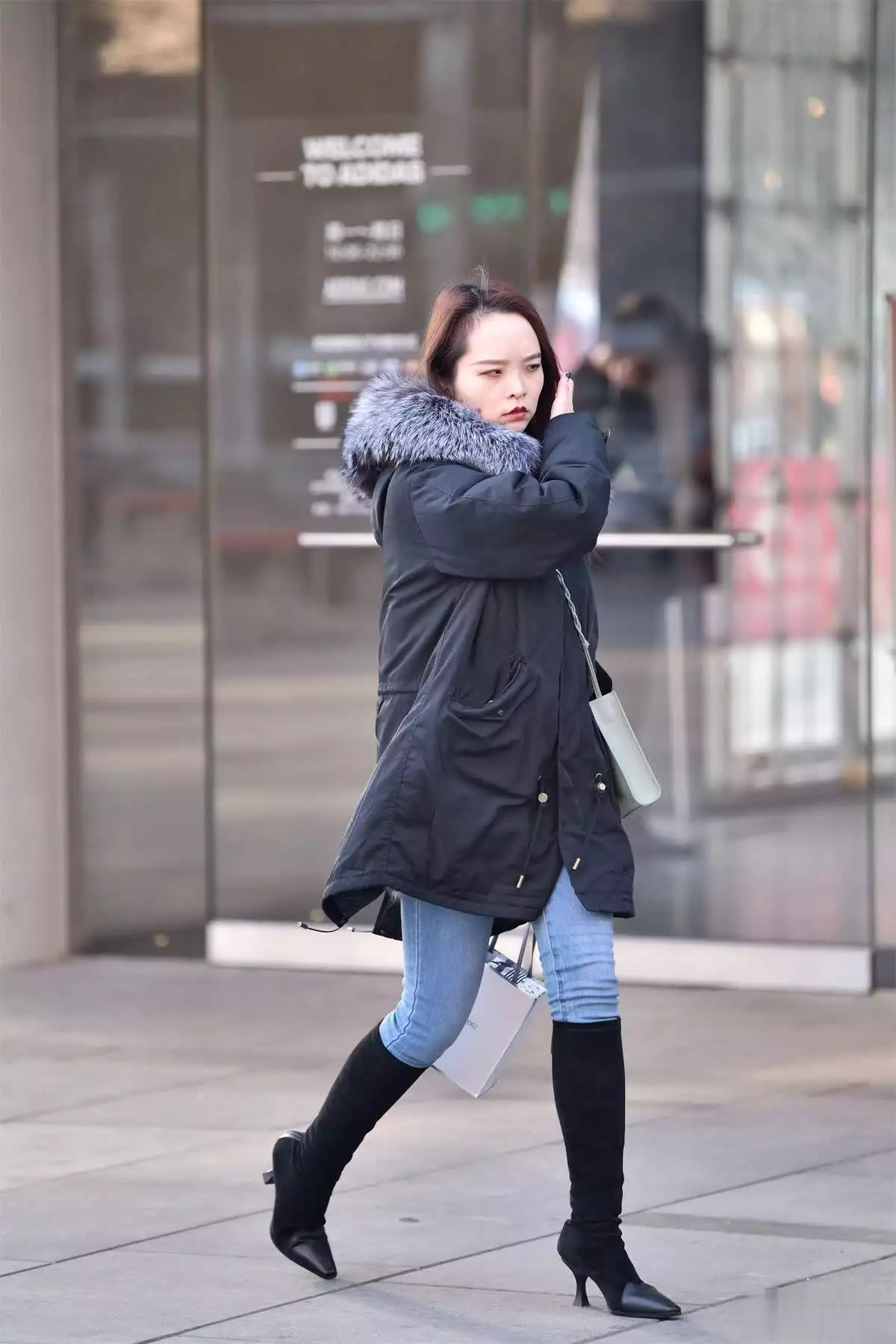 6厘米拼接材质长靴,搭浅蓝色紧身牛仔裤,深灰色中短款羽绒服忠义狼事:野狼背叛狼群,宁可被咬死也要救人,只因曾被人养大
