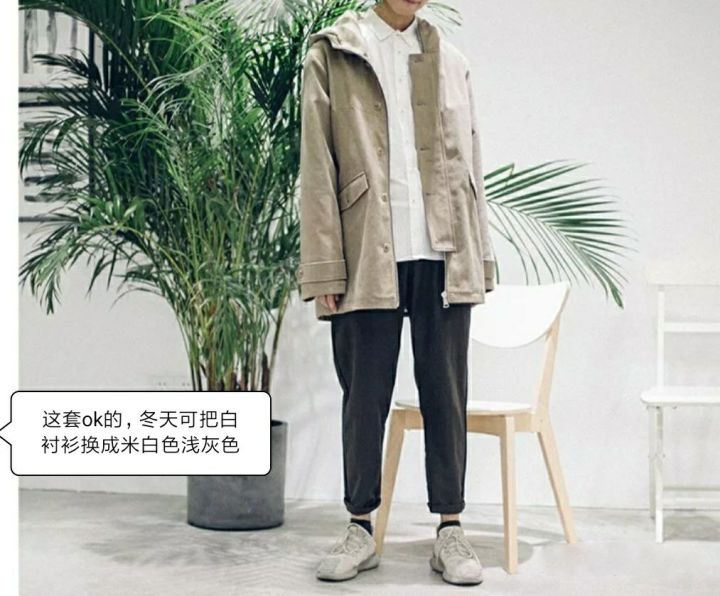 长得不帅,不要单穿白衬衫,很少有男生能把白衬衫穿好,秋冬可把白衬衫当做深色衣服的内搭,对整体做小面积的提亮,减少沉闷感。