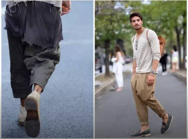 腿比较粗的男生窄裤就不适合了! 不但矮还加了胖的感觉,选择上宽下窄的剪裁或是九分宽裤更好哈~
