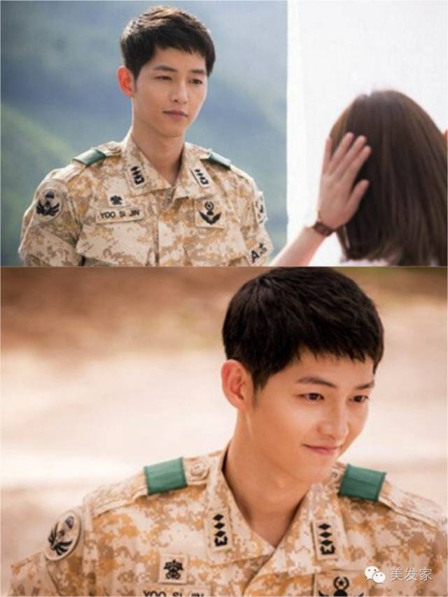 像是很红的【太阳的后裔】,男主角宋仲基也是这样的发型,两侧与后方头发剪短,头顶保留一些长度,呈现带有自然感的波浪线条感,这样的发型适合脸型瘦长的男生,因为头发短加上线条的丰盈感,可以让视觉上的比例看起来更好。