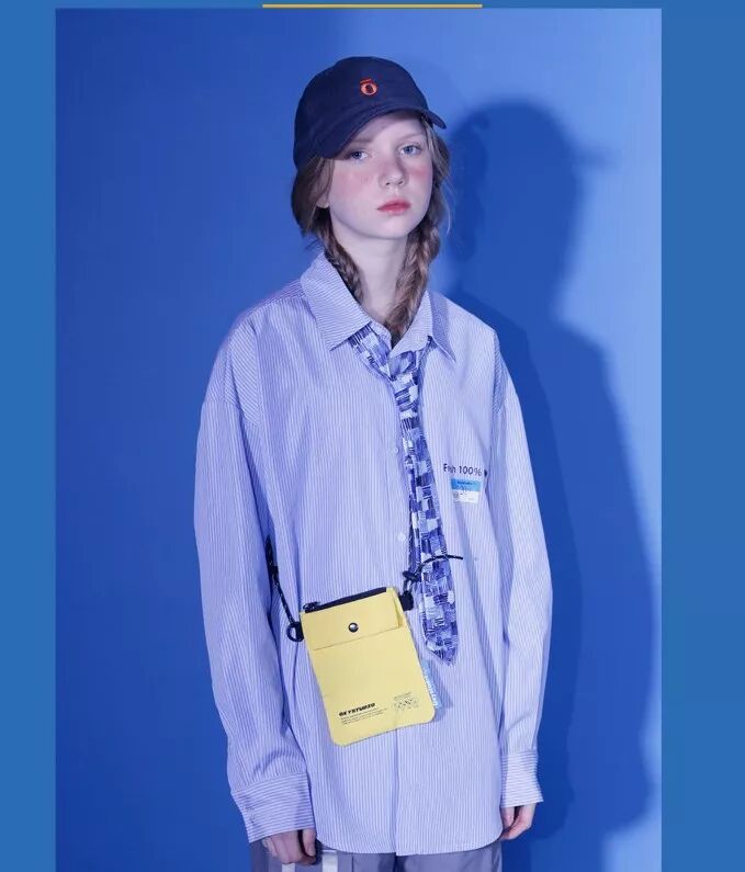 我认为Oxystudio首当其冲。Oxystudio是这几年国内火起来的一个潮牌,最初成立于2014年,目前旗下主打品牌为OXY。这家牌子的衣服上身效果很好,宽松但不显得过于肥大。更重要的在于它的面料基本都是全棉的,对于哈莉这种特殊皮肤的刺激性非常小,而且方便水洗,在遇到应急场合时不会因为担心弄脏衣服而束手束脚。同时Oxy的设计理念也很贴合哈莉。前卫但不张扬的设计风格正好能够略微收敛一些哈莉身上过分的离经叛道。而这家店所采用的的暖色系色彩风格也可以一定程度上中和哈莉的肤色。一款依云刺绣加上一款竖条纹衬衫,单凭上装哈莉就能迷倒万千哥谭男性。