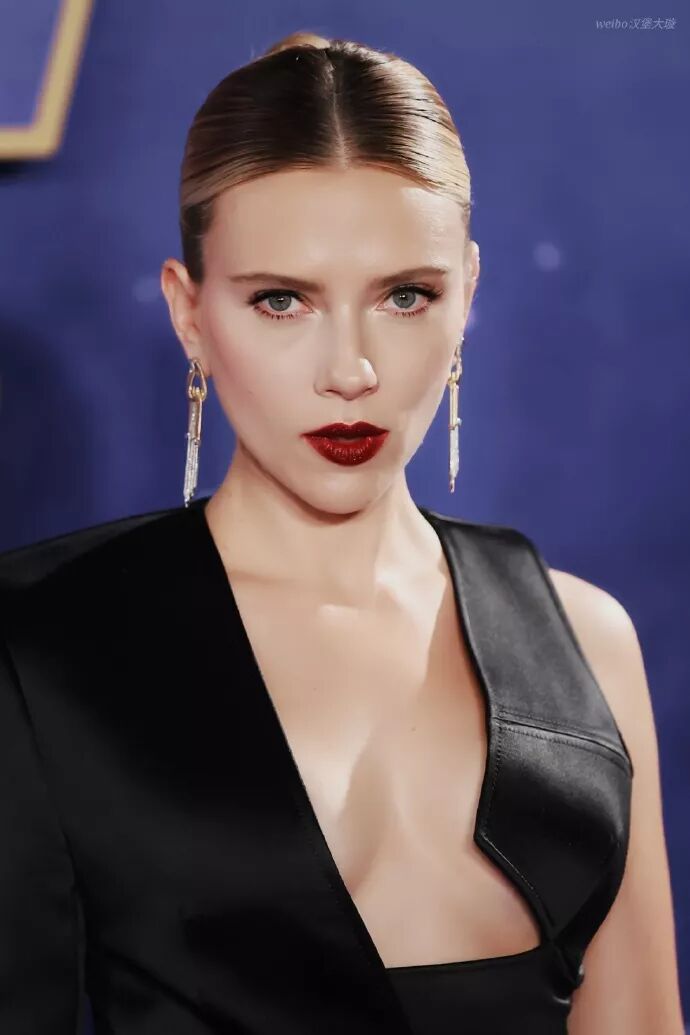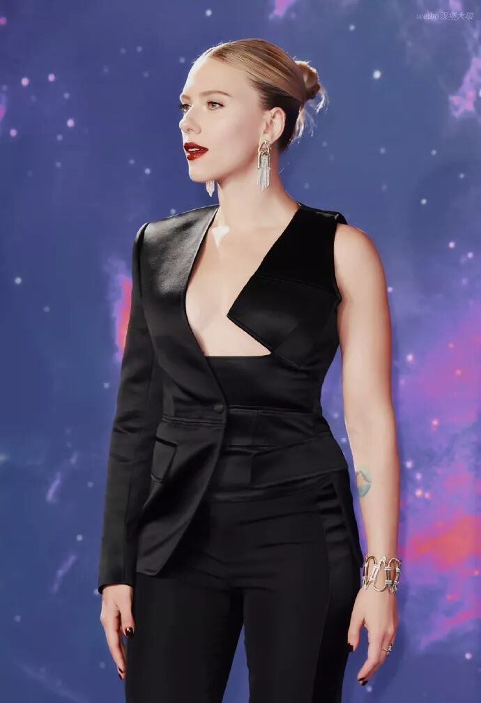 黑寡妇扮演者斯佳丽在生活中也是大家公认的性感女神,甩掉内搭的黑色套装和深V露背礼服裙都是她散发性感魅力的必备单品。