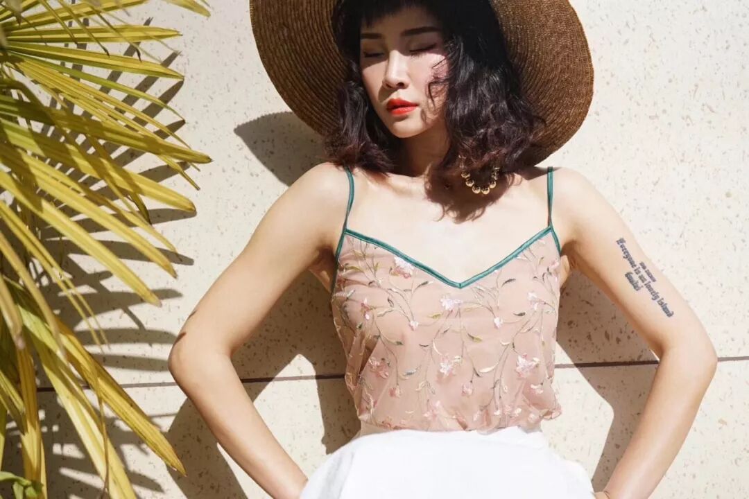 亮眼橙色的民族风套装和拥有长长绑带的罗马凉鞋穿在奥妹身上,也是夏日里一口清爽不腻味的甜。