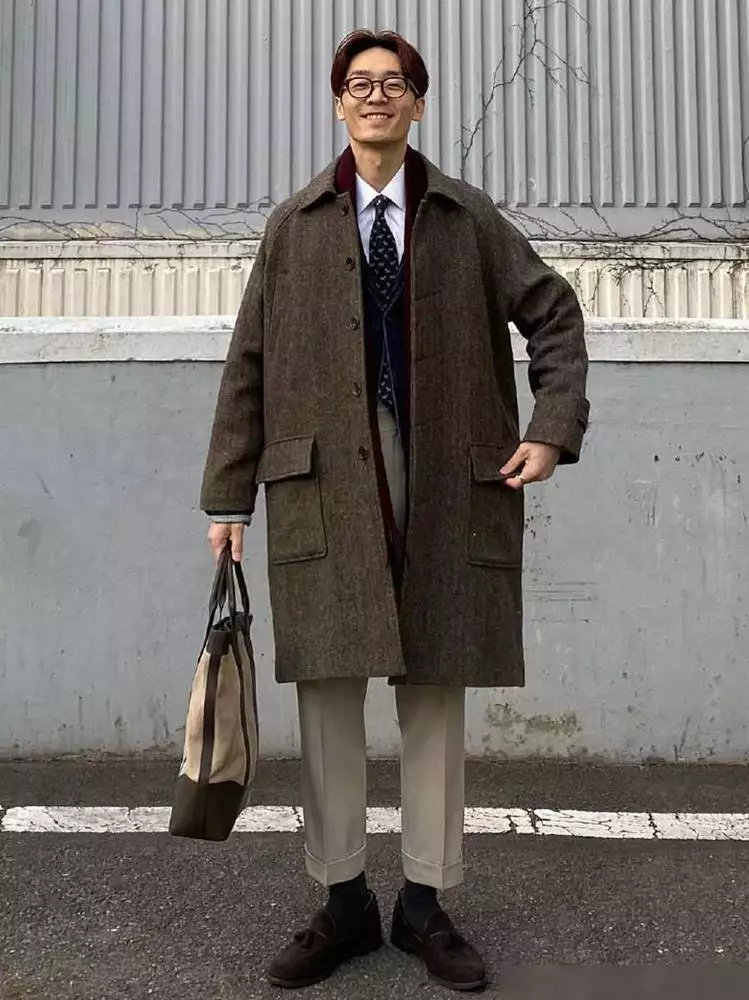 并且韩国男生在搭配大衣时会采用叠穿的方式,这样既能保持暖和又能展现出穿搭的层次感。