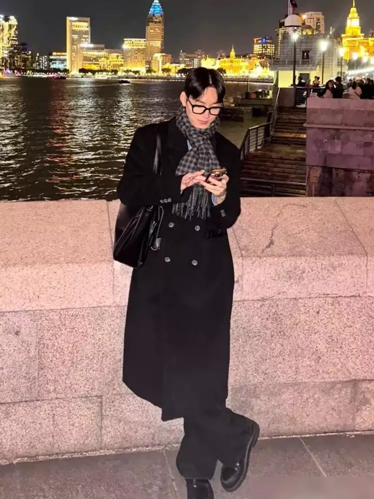 其次,在选择大衣的时候,可以选择一些廓形较大的大衣,例如阔腿裤或者长款西装外套,这样不仅能够让整体造型看起来更加挺拔有气场,还能够让你在人群中更容易脱颖而出。
