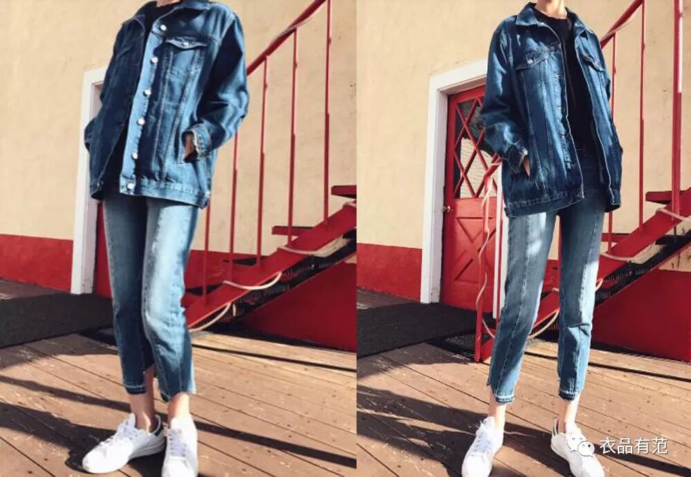 适合年龄21-25:白色/黑色T恤+浅蓝牛仔裤+帆布鞋