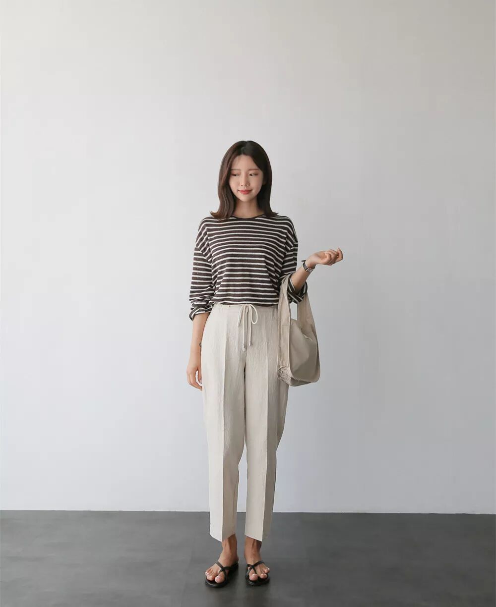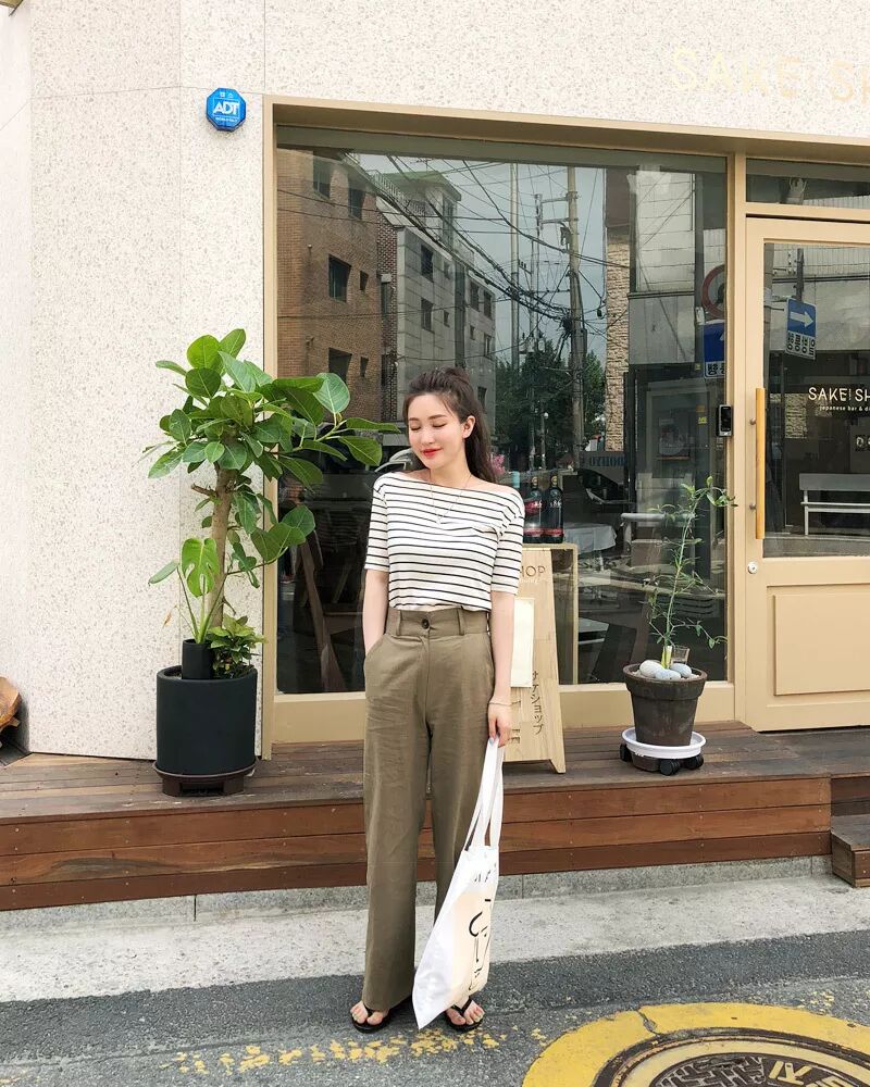 不是每个女生都拥有完美的身材,而有点小微胖的女生更青睐有点宽松款式的单品,这款条纹T恤是今年很流行的搭配单品,宽松的版型简直是为微胖女生最贴心打造,随意搭配一件烟管裤,简直太好看了。