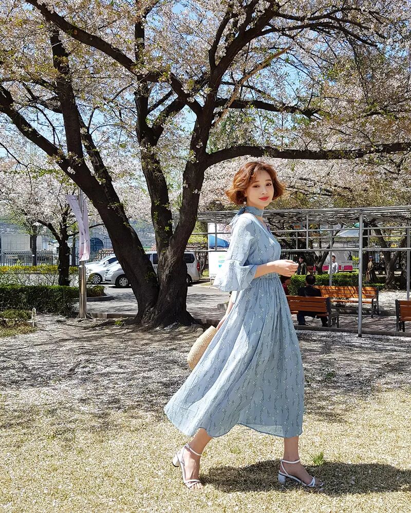 粗跟鞋气场十足,搭配印花连衣裙完美mix性感和酷感,不想只做乖乖女,高跟鞋穿起来吧。