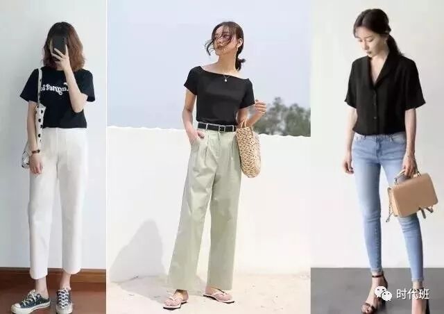 提到夏天万变不离其宗的就是T恤衫啦,不管是纯黑或者纯白款都很百搭,建议大家都应该人手一件黑白款,黑色的款式还具有一定的视觉显瘦感,上身修身显瘦。