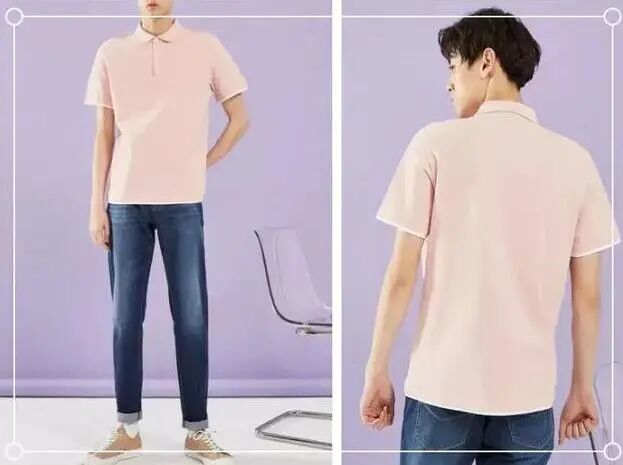 翻领POLO衫,在炎热的夏季穿起来会显得非常青春有阳光的感觉,上衣是典型的翻领POLO衫,休闲的版型,落肩的设计款式,可以很自然的修饰你的肩膀线条,然后跟下身的牛仔裤搭配,给人一种稳重又帅气的感觉。