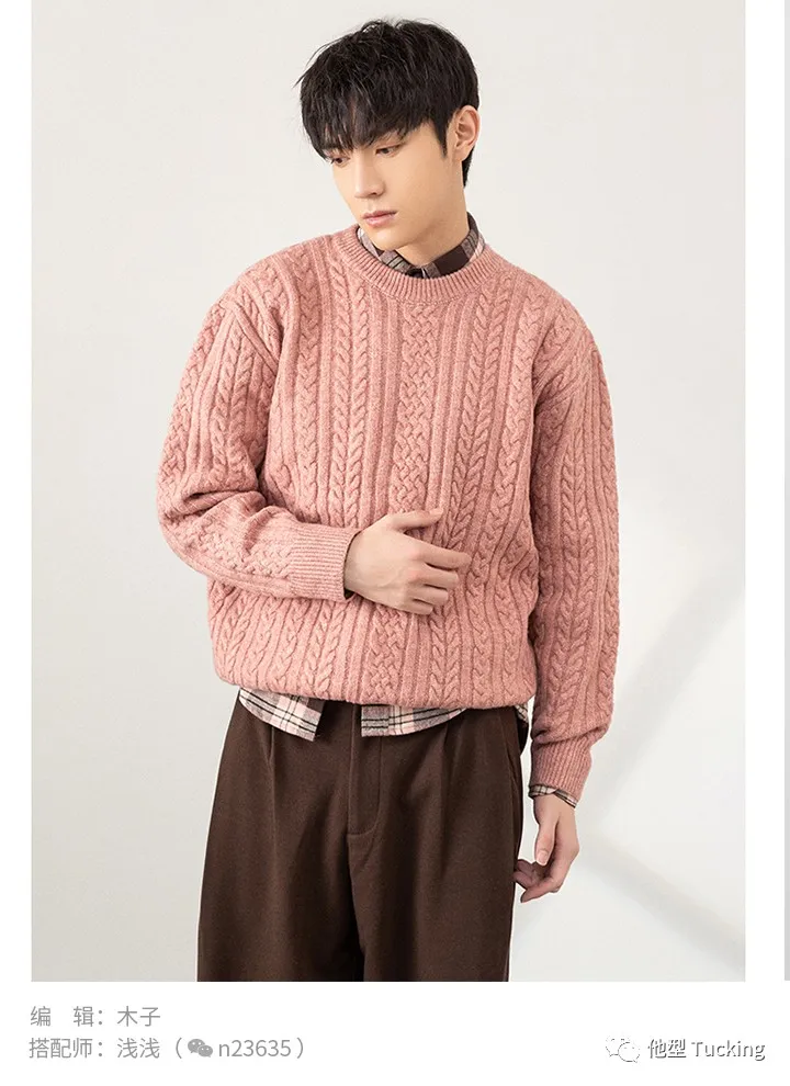 男生在衣服颜色的选择上不必总是拘泥于黑白灰藏青等基本色彩,图中的粉红色,男生一样可以穿,有温柔暖男的气质。