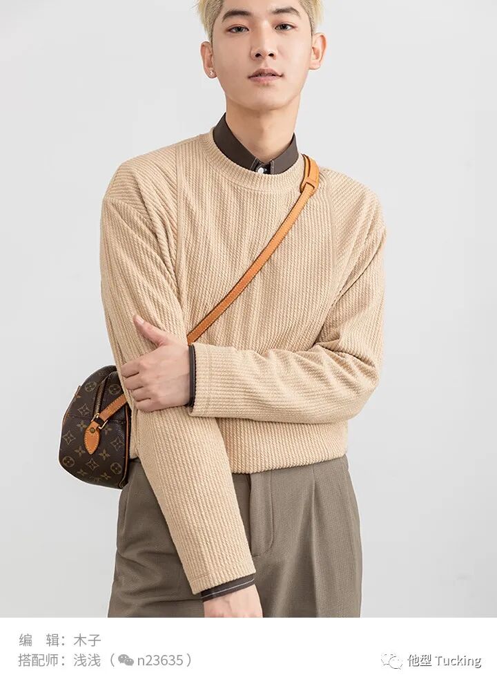 上浅下深的搭配,也是基本的穿搭技巧,米色与驼色在秋季穿着也很应景。今天就分享到这了,照着上面学穿搭,变帅其实很简单。