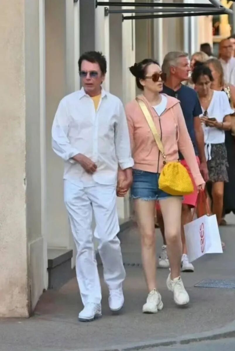 巩俐和外籍老公国外高调炸街!她57岁穿粉衣热裤如少女,74岁老公全白造型似少年
