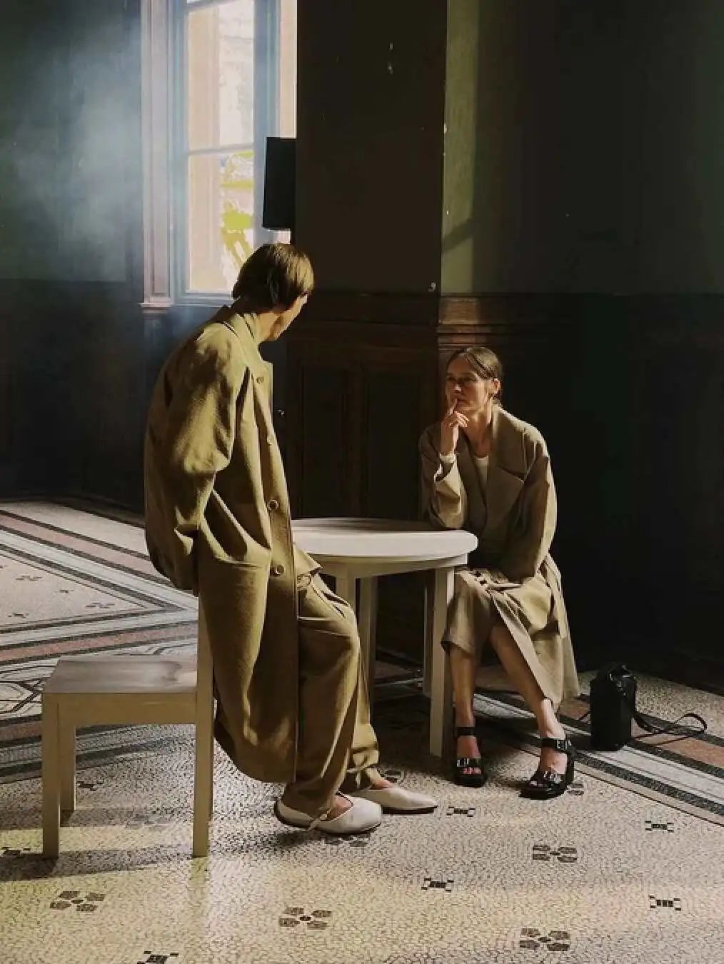 整洁、简单的内搭,笔挺的长裤/半身裙,风衣可以不穿,但至少得挂在手上。书卷气里夹带着时髦私货,高智感的知识分子风,一度成为英国留学生的标签。