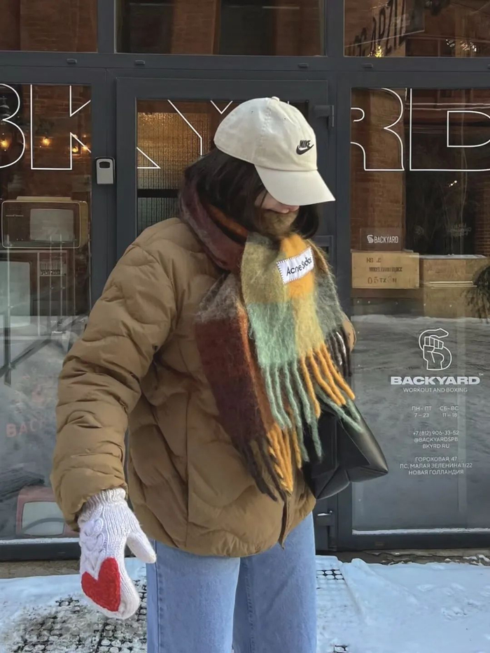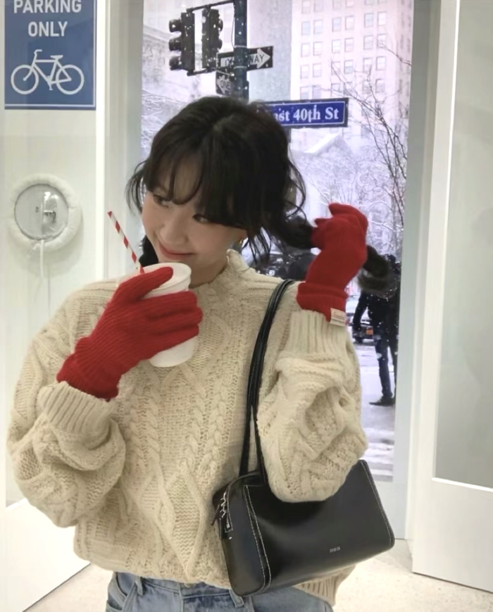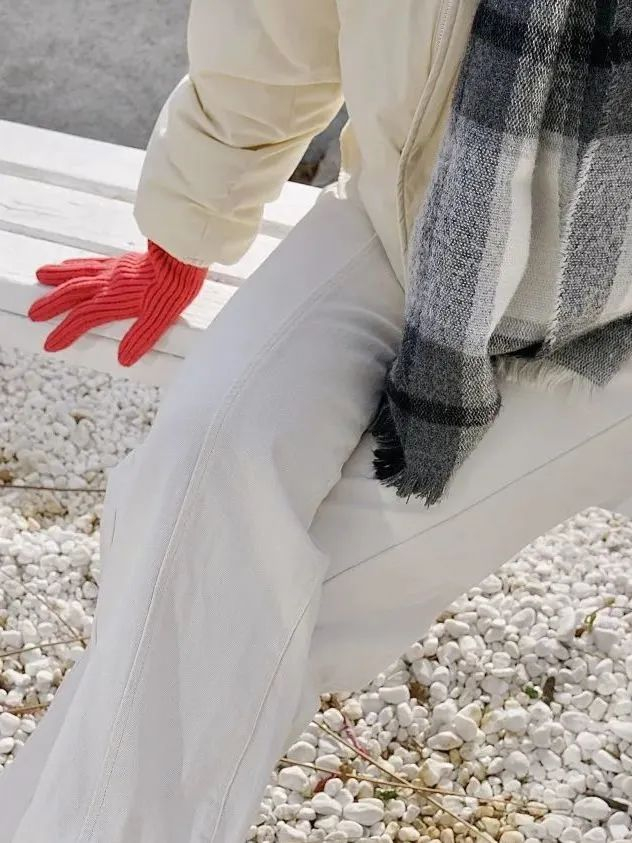 普通米色手套虽然也好看,但是整个穿搭没什么特别亮眼的地方。