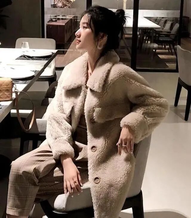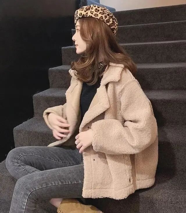 短款的毛绒外套,翻领的设计,很适合小个子的女人哦,穿在身上减龄又很衬气质,因为衣服上有圆圆的扣子装饰,看起来很是显舒适哦,再搭配上一条呢子裤,裤子是呢子的材质,比较立体,萝卜裤的样式,还能很好的显瘦,穿在身上也不会显得很老气哦,鞋子,可以选择厚底休闲鞋,还可以选择平底鞋,小靴子穿这样也是很好看的呢!