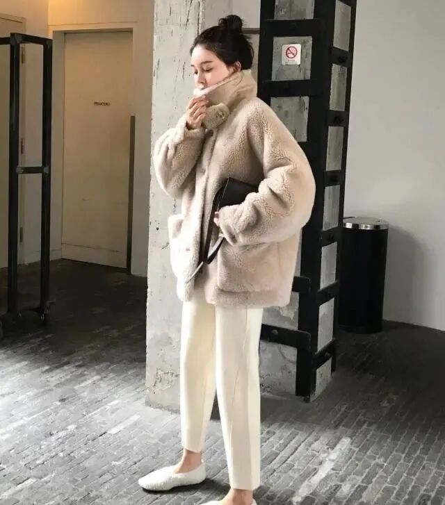 155cm小个子女生冬季衣服搭配技巧,毛绒外套+萝卜裤,显高又显瘦