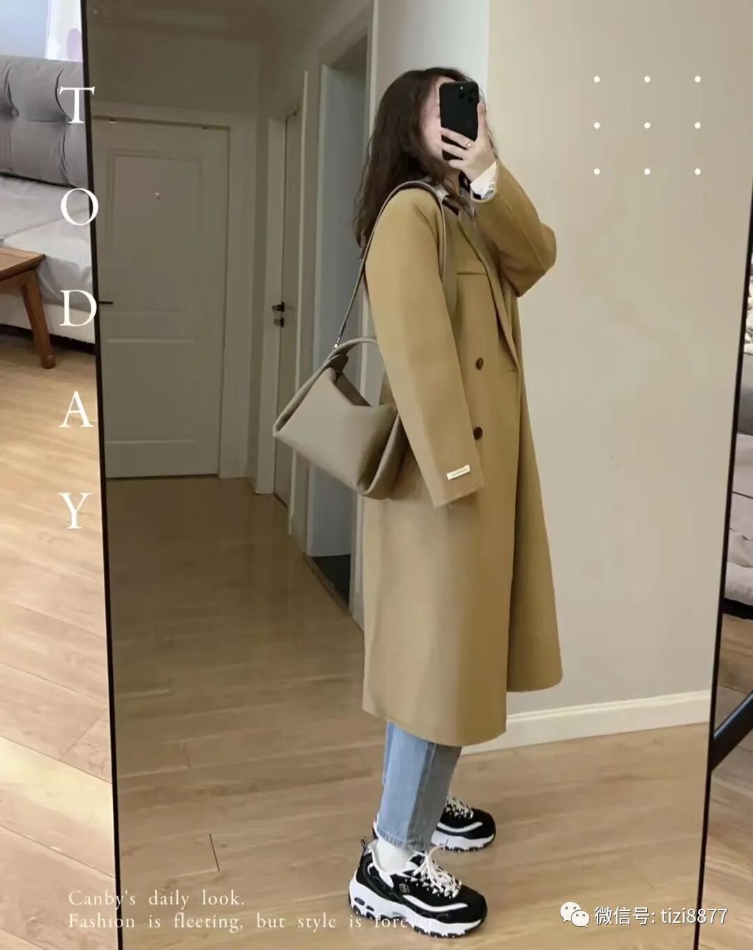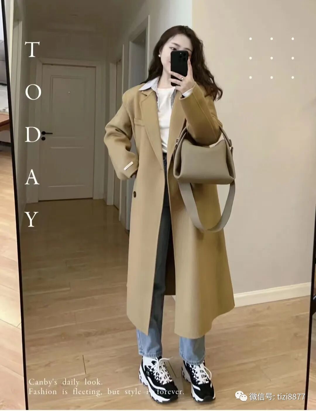 look11 驼色大衣+牛仔裤