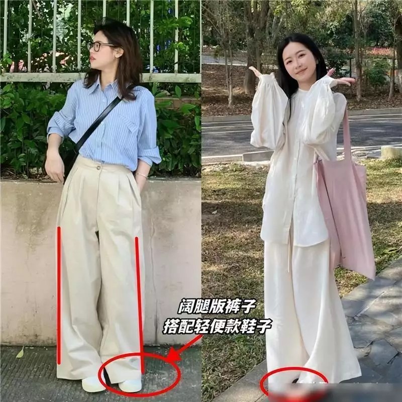 ✓裤腿不要选窄,宽松版型更遮肉不显胖