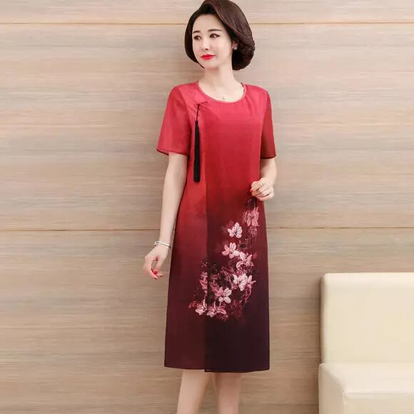 YCE-1956-19029阔太太宽松大码复古旗袍式连衣裙