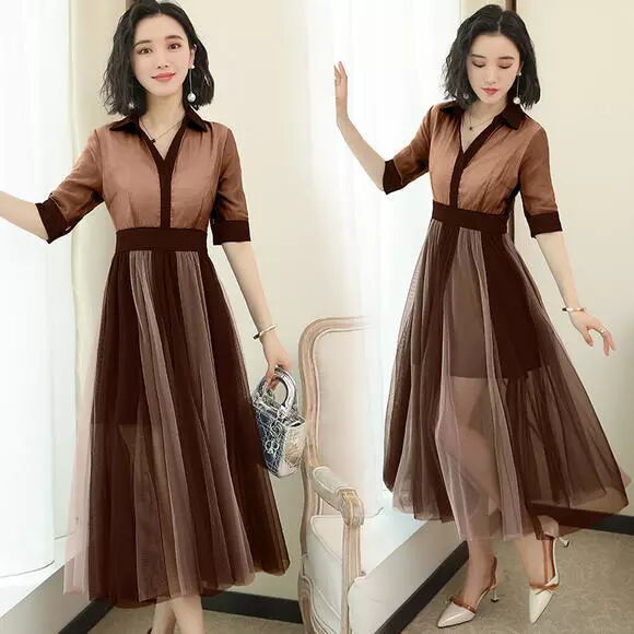 KQL-13D8535 新款韩版网纱拼接连衣裙