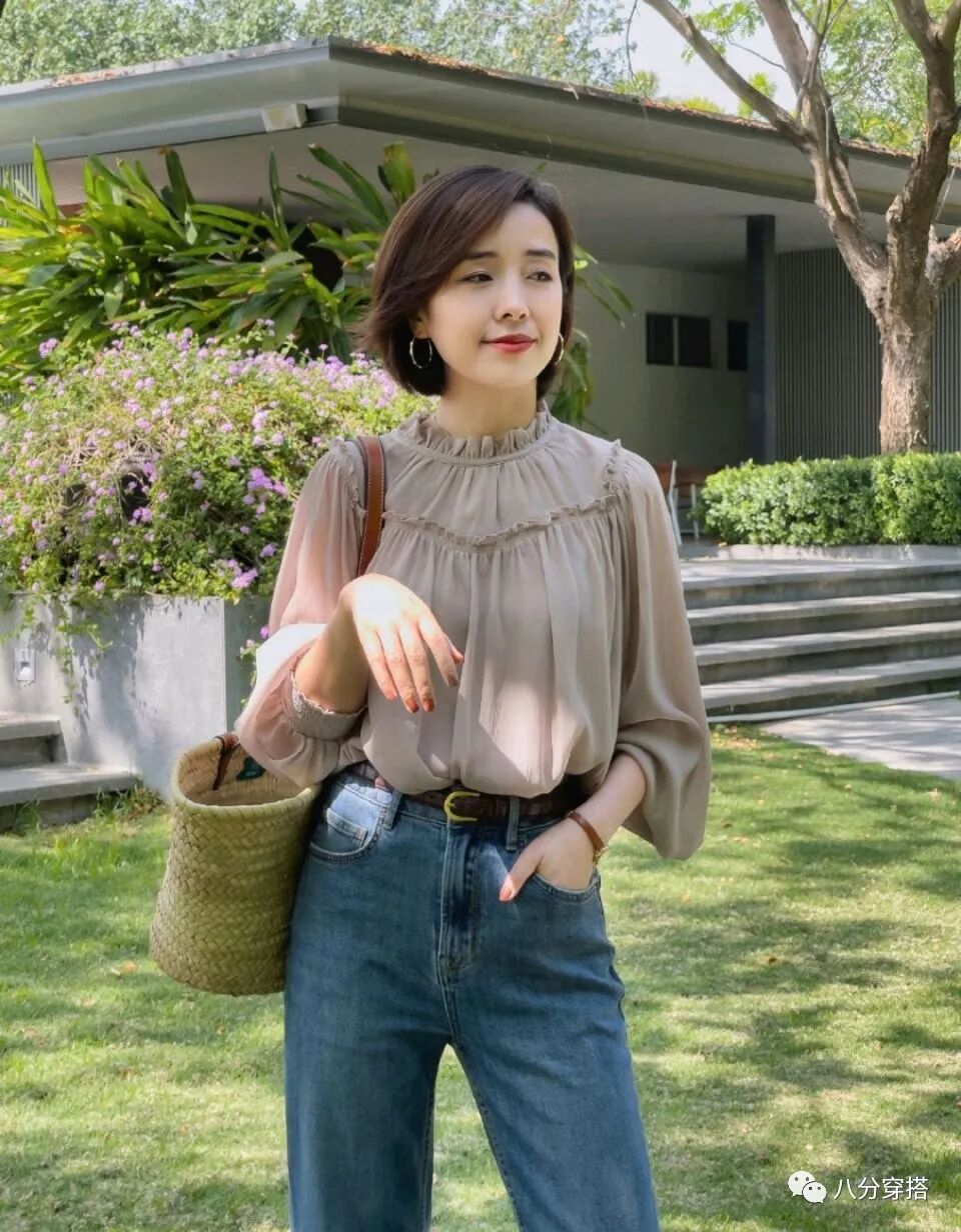 衬衫和牛仔裤的搭配一直都是时尚界经久不衰的组合方式,不管是通勤上班还是日常休闲都可以,更加的清爽减龄和自然流畅,在色彩选择方面可以选择一些饱和度低一点的颜色,更有利于呈现女性的温柔魅力,烟紫色就是一种非常不错的选择,既有莫兰迪色的温润和低调气息,融合了紫色也显得更加个性独特一些,是很有魅力和气质感。