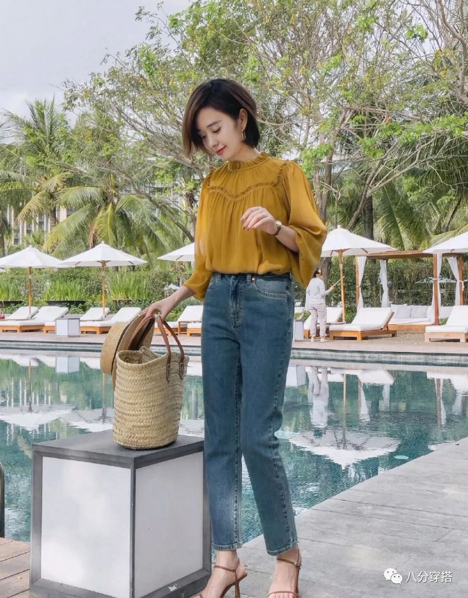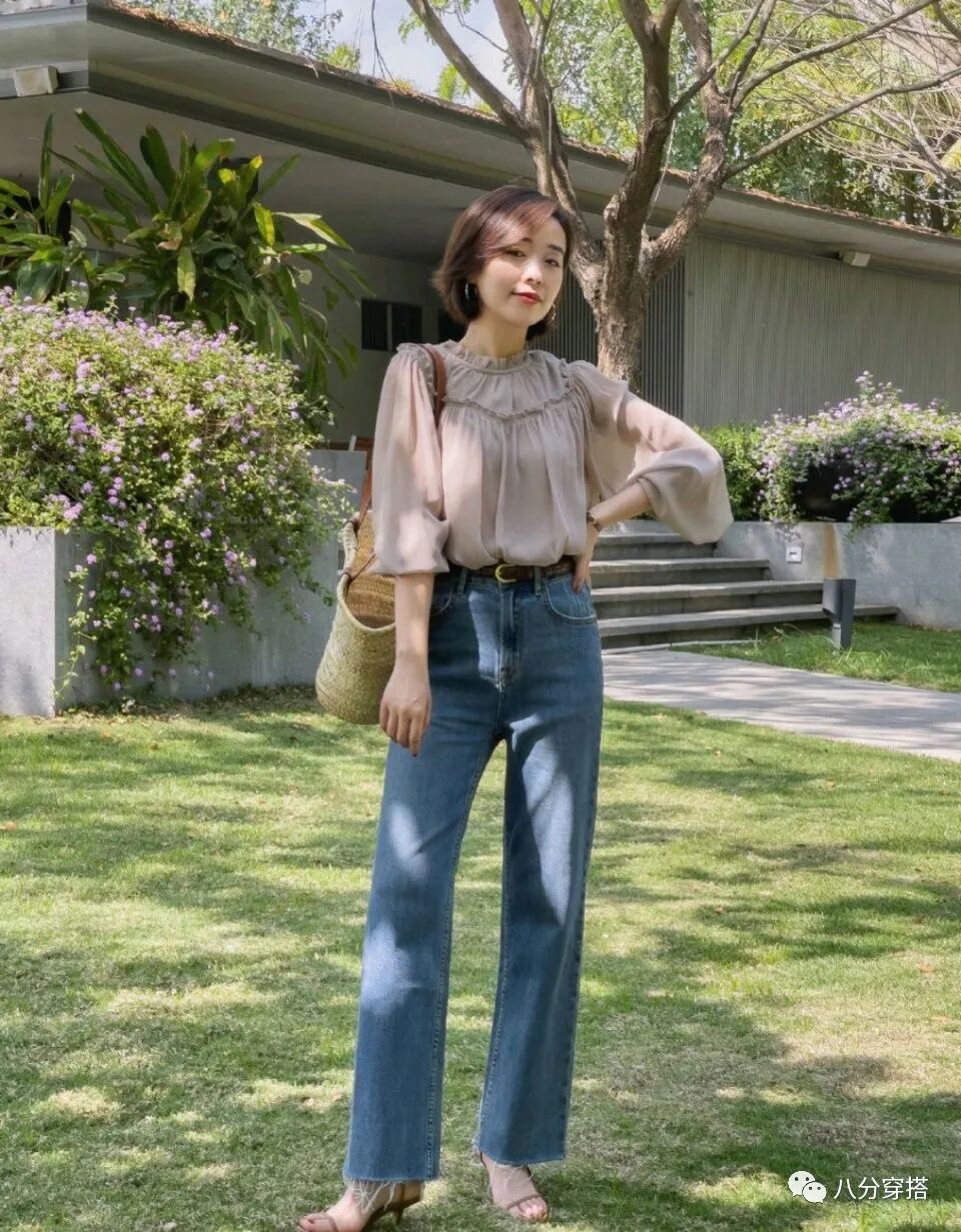 搭配上直筒牛仔裤,对于双腿没有束缚感,更加舒服自在,直筒的裤型还特别修饰腿部的问题,例如什么肌肉腿,小腿粗等问题都可以掩盖掉,搭配高跟鞋更有女人味,而搭配平底鞋,运动鞋作为出游的穿搭也不错,呵护双脚,方便又时髦。