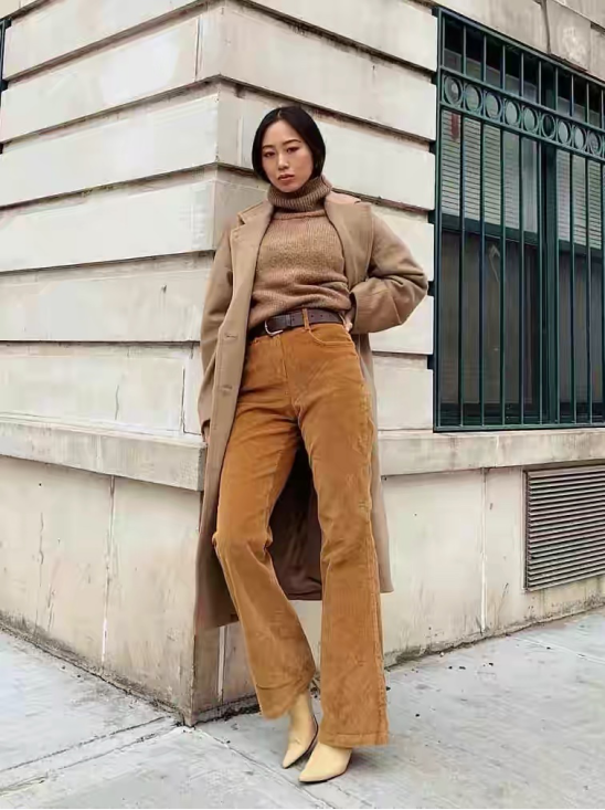 相信每一个时髦女性的衣橱里都会有一件灯芯绒单品,而灯芯绒喇叭裤就是复古韵味和时髦前卫的结合体。灯芯绒面料在视觉上就让人十分的舒适大气,锦上添花的还是手感上给人的惊喜,顺滑度满分的它也让更多女性青睐,加上喇叭裤独有的上收下放设计,整体显得格外吸睛时髦!