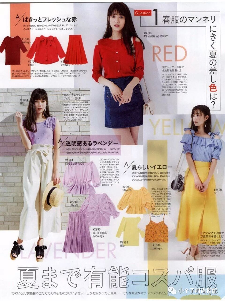 最后的最后,小编整理了几个穿搭来推荐给小可爱们。蝴蝶结中袖衬衣配蓝色牛仔A字裙,这套搭配是不是很少女系呀?荷叶边一字肩上衣配黄色半身裙,只要腰线略靠拉一点就好,它能让你扁平的身材显得饱满些。其实,裙装更适合小女生的日常穿搭,省时不费力。