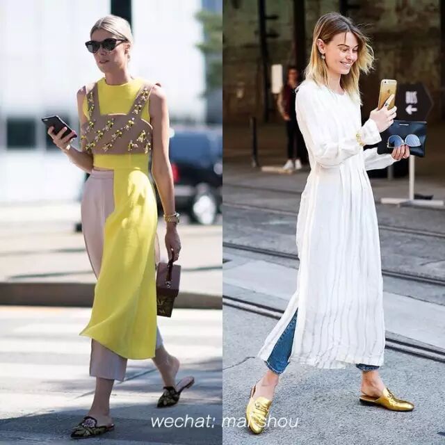 个子不高的女生要穿长裙,就要将长度提高至脚眼位置,留有更多空间,展露脚踝的线条,即使穿上平底穆勒鞋 ( Mule Shoes ),一样可以穿上高眺感。