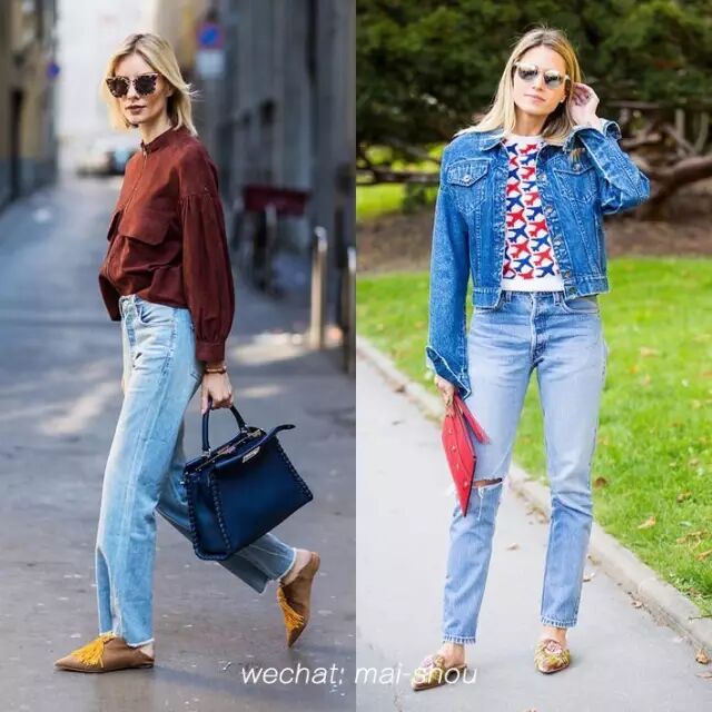 平底鞋款的 Mule Shoes 比高跟版本的来得随心率性,跟牛仔裤款可算是绝配,要令视觉上有增高效果,可考虑尖头款式的穆勒鞋 ( Mule Shoes ),有助修饰脚形。