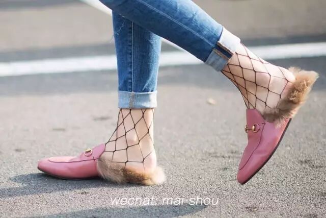 要将平底穆勒鞋穿出高眺感,别忘记要著重下半身的细节,不妨以鱼网丝袜配衬,增添女人味外,更可以有助修饰腿形,平衡身长比例。