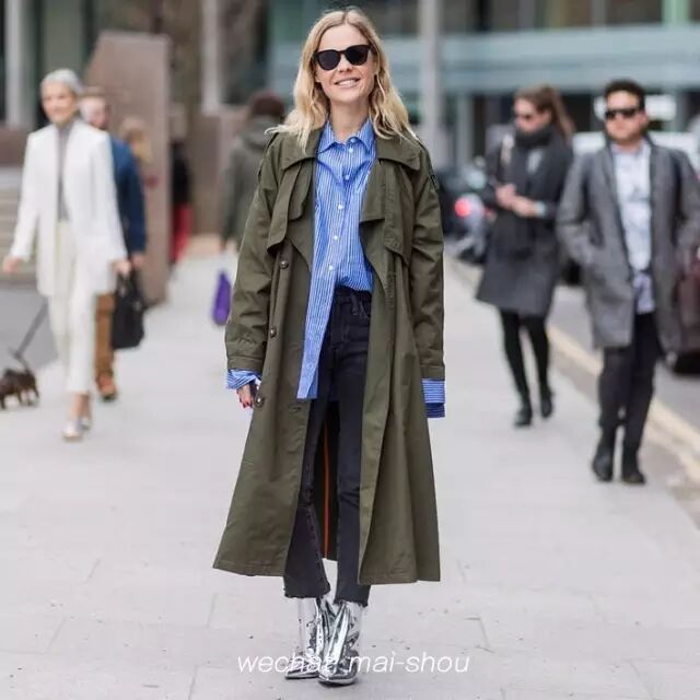 外搭真皮束腰腰带,更型格地展现军事风格的长风衣。