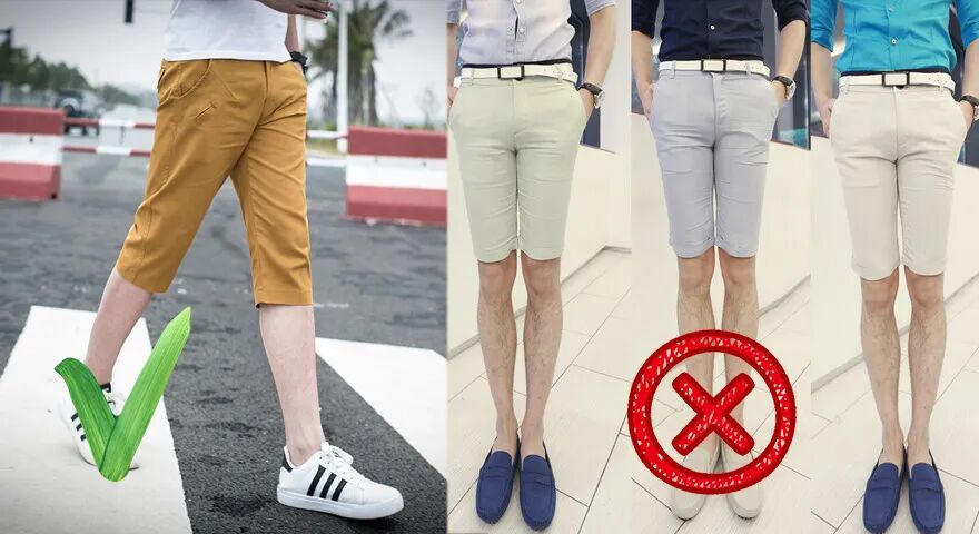修身的男士最好搭配修身的短裤。避免穿宽松的短裤,因为它们会使您的躯干和腿显得不相称。应该不惜一切代价避免穿更宽的短裤。