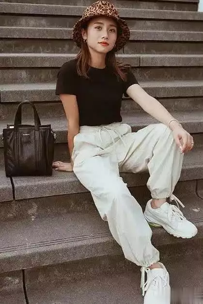 一顶豹纹帽子为黑白色的简单穿搭增添了时尚感,让整套穿搭更加趣味别致,几分小野性,时尚又高级。