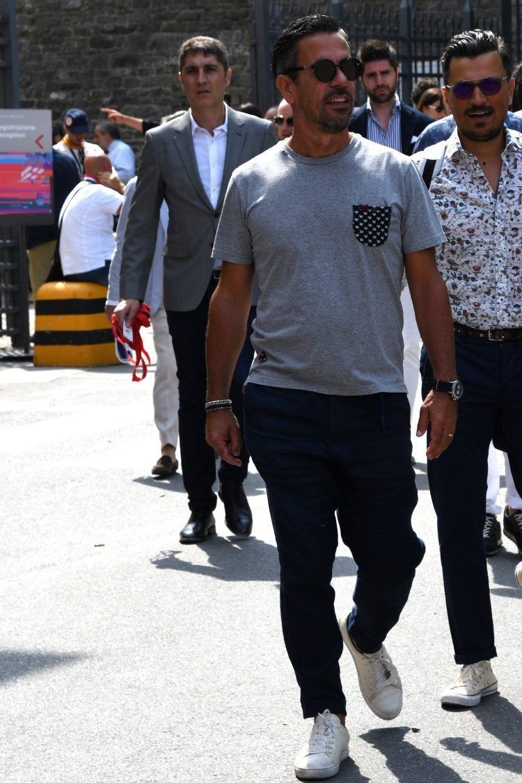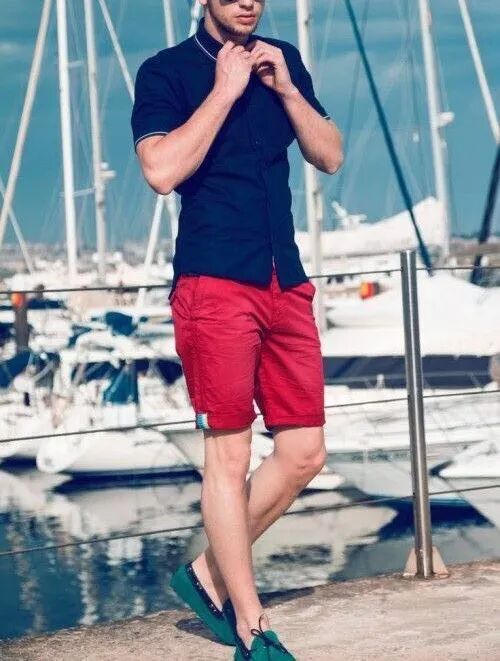 上面的穿搭则是错误示范,搭配都超过了三种,第一张图如果没有鞋子的颜色,还算一个不错的穿着,但鞋子毁所有,太跳的绿色,一般男士hold不住,视觉上也完全不和谐。第二张驼色鞋子完全和皮肤融在一起,穿搭时男士一定要避免,换一双浅一点颜色的鞋,视觉效果会好很多。