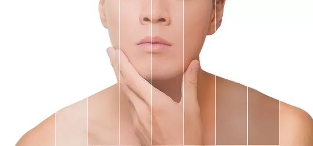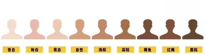 首先什么程度才真正算黑呢?大家可以参考下面这张图找到自己对应的肤色(自然光下观察)以自然色为分界线,左侧为浅肤色,右侧为深肤色。