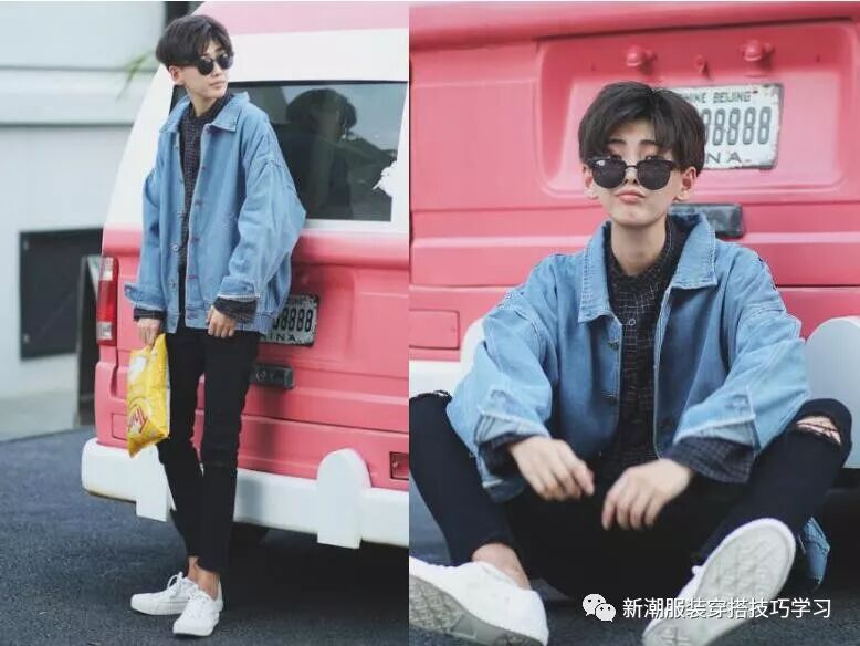 其实啊许多牛仔外套有些是日系风的,不过在很多人眼里都认为是韩式风格,总的来说两种风格也有吧!小格子的黑色衬衫看起来很是稳重,搭配上浅蓝色的牛仔外套在色系搭配上看起来有着鲜明对比,裤子最好选择黑色修身裤了。整体看起来是既有着韩式风的影子,但也不乏日系风的休闲时尚感。