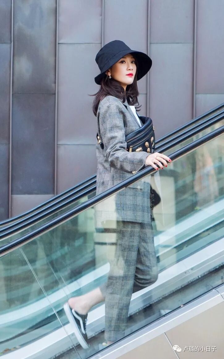 所以在穿衣气质上也都带着新兴女性的优雅端庄。比如成套的格子休闲西服搭配上帆布鞋,严肃中又不失一点随性。