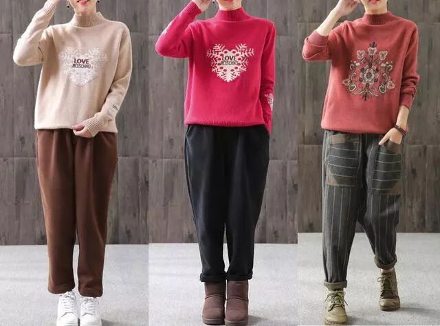 毛衣+哈伦裤,随性舒适