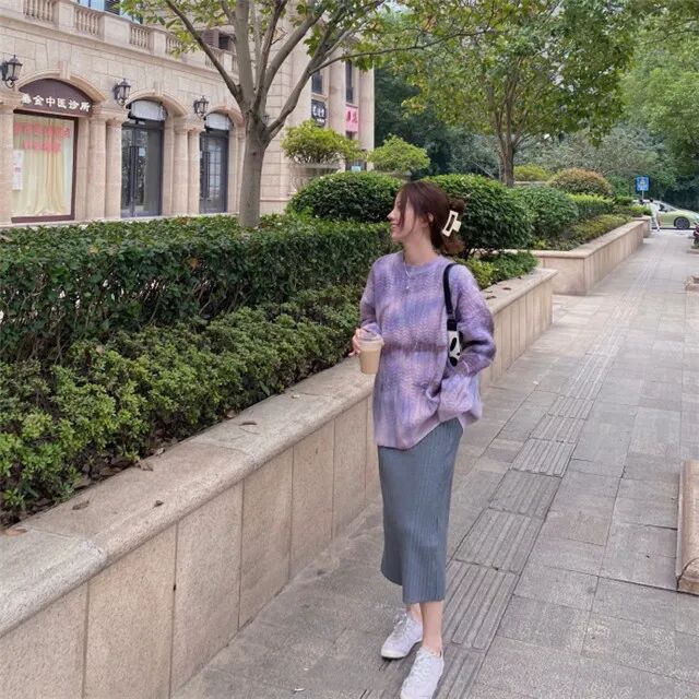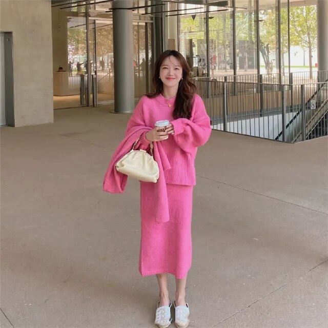小个子最忌讳的一类穿搭就是剪裁松松垮垮,没有立体感的衣服,比如下图中的针织套装。这样的衣服穿在身上,如果是微胖的话,像一堵厚实强壮的墙。
