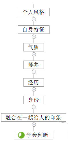 个人风格指的是自身特征、气质、修养、经历、身份等融合在一起给人的印象。其中自身特征可以通过分析脸部的轮廓、量感(占70%)和体型的轮廓、量感(占10%)得知,这也是个人风格最主要的判断依据,占90%,气质、性格、修养、经历、爱好、身份等方面对个人风格的影响比较小,占10%.。
