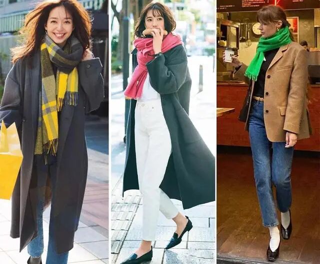 如果觉得自己驾驭不了大面积的亮色也没关系,可以通过加入小面积的亮色来点缀,同样能够提振气色。一条颜色明艳的围巾,可以让暗沉的灰色大衣瞬间明亮起来,还能衬托好肤色,这个一举两得的时髦小技巧,非常实用。