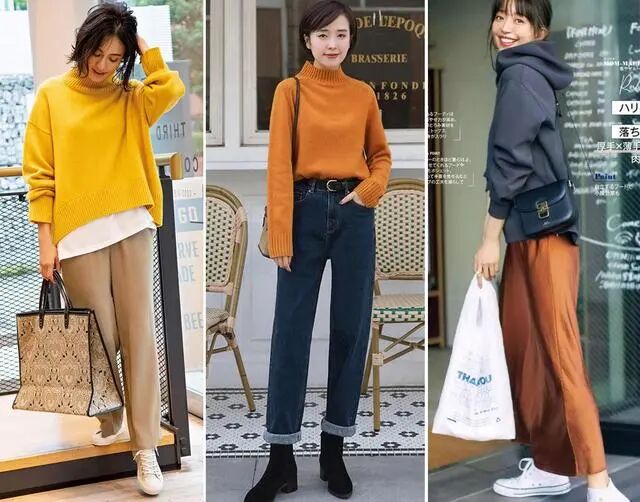 4、冬天多穿亮色,时髦又减龄冬天穿衣想要既保暖又不失女人味,除了要注意衣服的版型、处理好外套与内搭之间的层次关系,在衣服的颜色选择上也可以跳出“安全区”,告别常规的黑白灰,尝试将明亮的色彩穿上身,你会发现自己在沉闷冬日里也可以美得发光。亮黄色是今年的热门流行色,不妨选择一件黄色系的毛衣,让它点亮你的冬天,又或者用一条暖色调的红棕色缎面半裙,减弱灰色卫衣的黯淡,有了色彩的点缀,会让你显得元气满满,减龄又时髦。▼