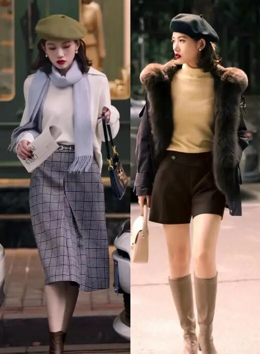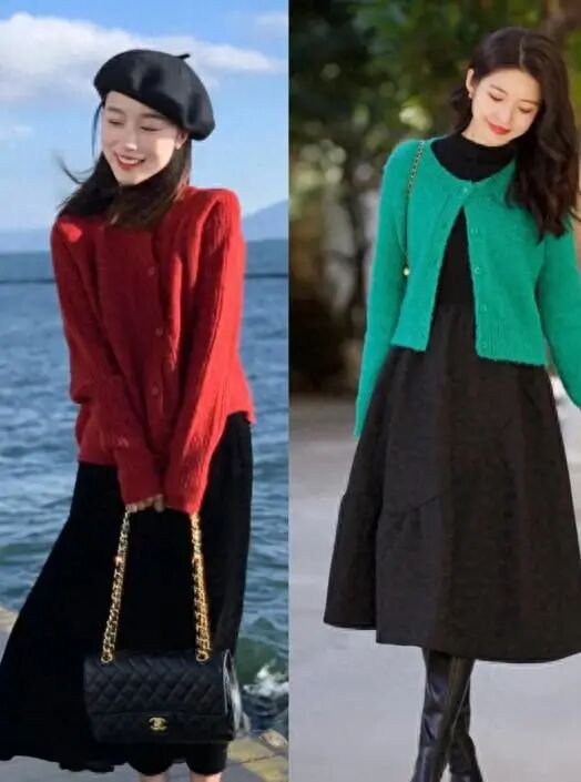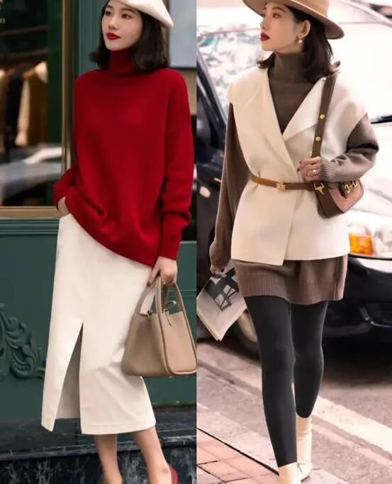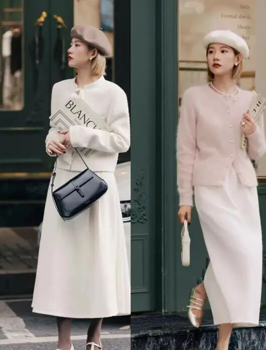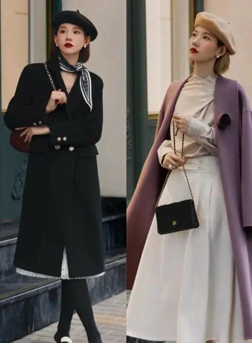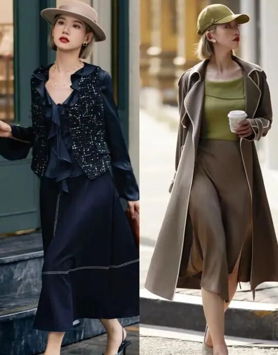 在冬季,我们可以尝试穿裙子来增加女人味。长裙是一种非常得体和优雅的选择。不仅能遮挡大腿,展露脚踝,还能显瘦,整体造型既不拖沓又很日常。此外,选择挺括而非过于紧身的裙子也是一个重要的搭配技巧。秋冬季节的穿搭本就相对厚重,如果裙子太紧身,会使人感到紧绷不舒适,而A字裙或者伞裙则是更适合大众的选择,既显瘦又舒适。