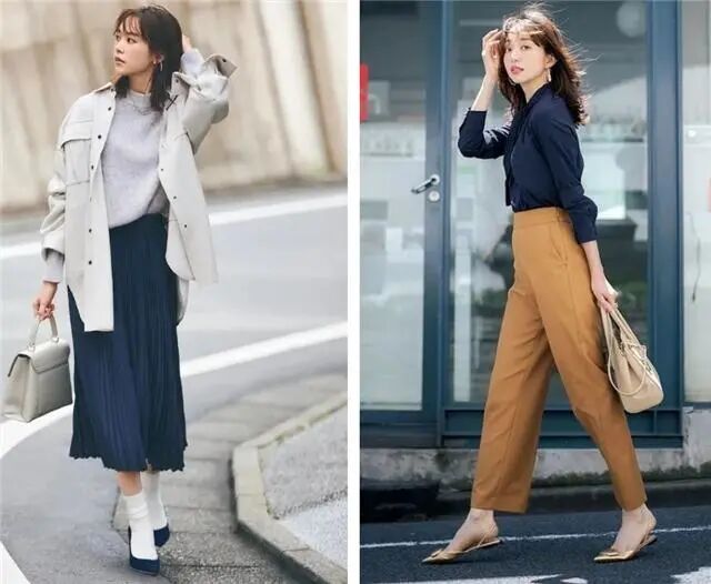 选择过膝不过踝的半身裙,优雅还遮肉;选择直筒裤,尤其是挺括有型的西装面料,搭配上针织衫或者T恤,简约大气还遮肉。春夏,选择九分的长度,露出脚踝,更利落。