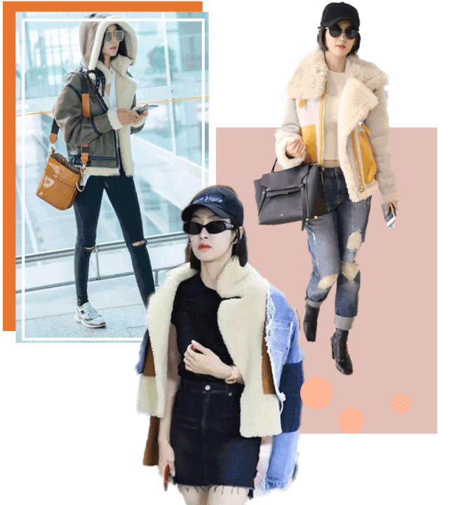 除了“泰迪熊外套”,这种拼接羊羔绒外套可以说是迷倒了一大片女明星,这种款羊羔绒外套即保暖又不会显得臃肿,一到冬天女明星的机场look基本都被它承包了。