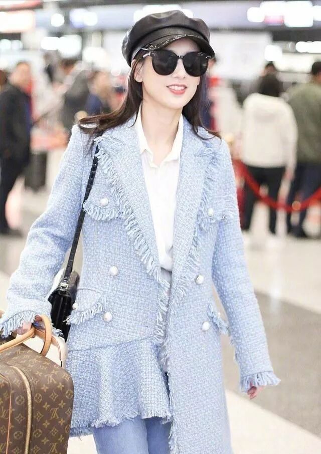 黄圣依在机场中,一身流苏粗话呢荷叶摆,珍珠扣长款小西服外套格外的引人注目,内搭的也是衬衫服和紧身牛仔裤,里面的服装的搭配属于简约风,最大的吸引眼球的就是外面这款小西服外套,整体感也是非常的淑女型,但黄圣依本身就是淑女型的女人,所以这套衣服穿在她身上便再适合不过了。